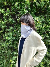 マスクと同じドライでサラッとした肌心地のいいストレッチ素材を使用した、スポット首を通すだけで着用できるスヌードフェイスマスクです。